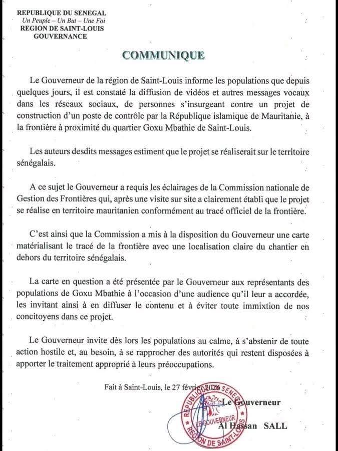 والي سينلوي السنغالية يحذر مطوانيه من الإنصياع للشائعات والصوتيات المضللة