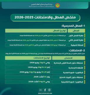 ملخص العطل والامتحانات الوطنية:2025\2026