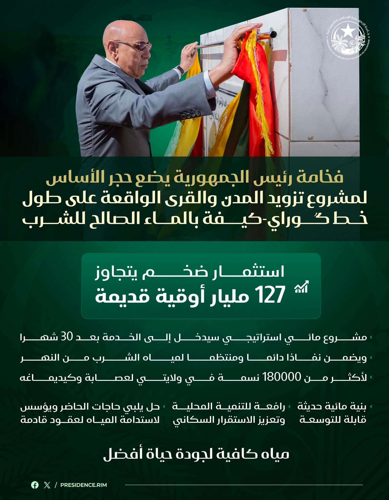 كيفة:فخامة رئيس الجمهورية السيد محمد ولد الشيخ الغزواني، يضع حجر الاساس لمشروع سقاية كيفة من“تويميرت إفلان”
