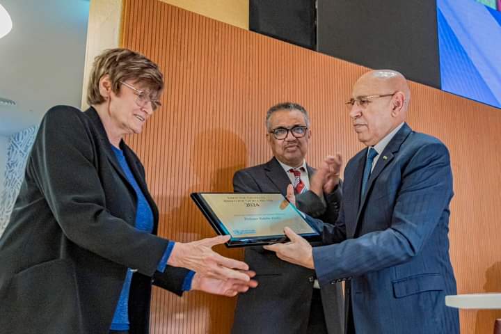 رئيس الجمهورية يسلم درع تكريم المدير العام لمنظمة الصحة العالمية، السيدة كاتالين كاريكو،