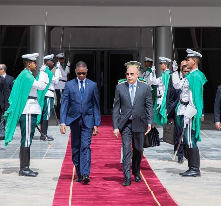 وودع فخامة رئيس الجمهورية بمطار نواكشوط الدولي أم التونسي من طرف معالي الوزير الأول السيد محمد ولد بلال مسعود، ومعالي الوزير الأمين العام لرئاسة الجمهورية، والوزير المستشار برئاسة الجمهورية، وعدد من أعضاء الحكومة، وقائد الأركان الخاصة لرئيس الجمهورية، والمديرة المساعدة لديوان رئيس الجمهورية، ووالي نواكشوط الغربية، و رئيسة جهة نواكشوط.