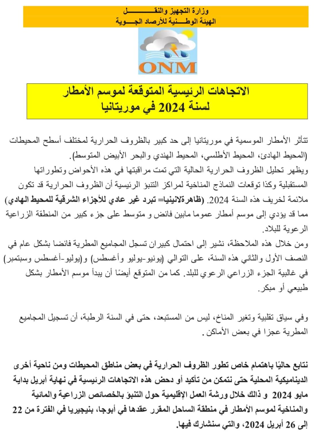 الإرصاد الجوية تتوقع خريفا مبكرا لموريتانيا لهذا العام 2024