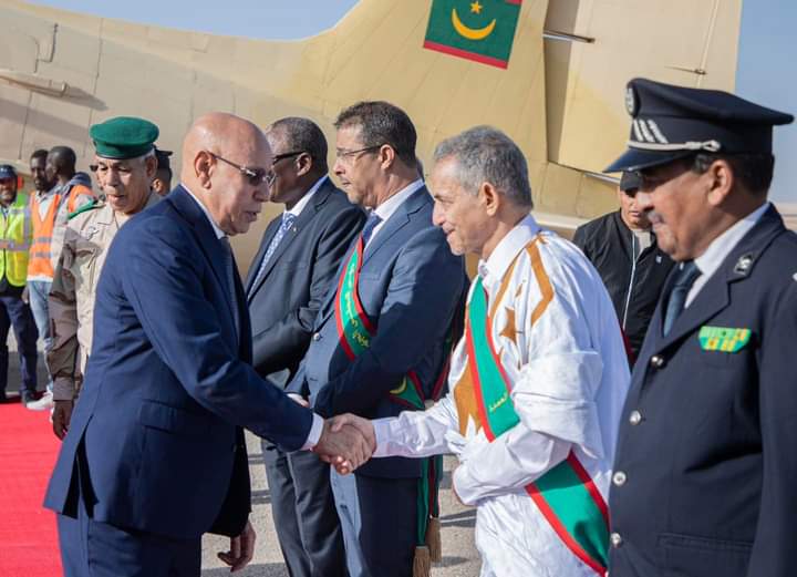 وكان في استقبال فخامة رئيس الجمهورية، عند سلم الطائرة، والي داخلت نواذيبو السيد ماحي ولد حامد، وقائد المنطقة العسكرية الأولى العقيد احمدو ولد الصايم، ورئيس سلطة منطقة نواذيبو الحرة السيد باه عبد الله ممدو، ورئيس المجلس الجهوي لداخلت انواذيبو السيد محمد المامي ولد أحمد بزيد، وعمدة بلدية انواذيبو السيد القاسم ولد بلالي، وحاكم مقاطعة أنواذيبو السيد سيد احمد ولد احويبيب ونواب الولاية.