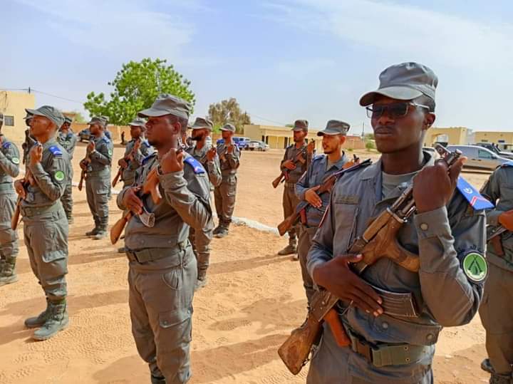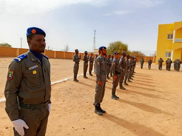 قائد التجمع المقدم يحي سيداتي الشيخ المصطف في كلمته بالمناسبة إستعرض مراحل تأسيس النواة الأولى للحرس الوطني من سنة 1912 مروراً بمرحلة الإستقلال الوطني سنة 1960 ،