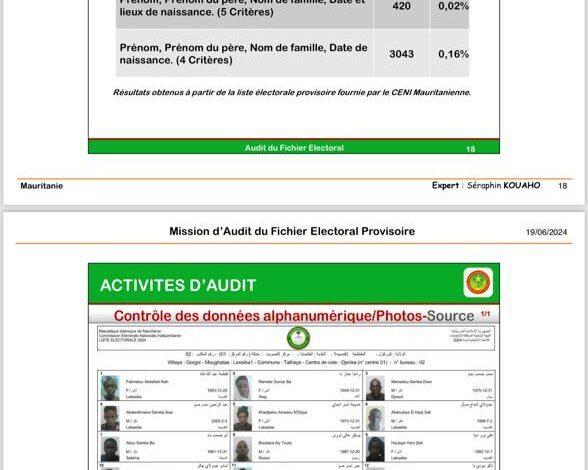 كشف تقرير أعدّه خبير دولي كلفته المعارضة الموريتانية بتدقيق اللائحة الانتخابية إن 420 شخصا على اللائحة الانتخابية يشتركون نفس المعطيات باستثناء الرقم الوطني.