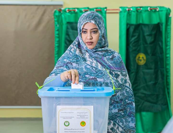 وأدلت السيدة الأولى، مريم الداه، التي كانت ترافق رئيس الجمهورية، بصوتها في هذه الانتخابات في نفس المكتب.