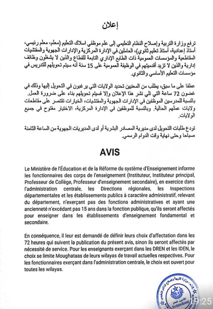 Sep 18 / التعليقات وزارة التربية والتهذيب تتجه لإعادة الذين لايشغلون وظائف بالإدارة إلى الاقسام وجهت وزارة التربية والتعليم اعلانا الى عمالها الذين لايشغلون وظائف ادارية والذين لم يبلغوا خمسة عشر سنة في الخدمة انه سيتم تحويلهم باختيارهم اولضرورة العمل أربعاء, 2024/09/18 - 20:03