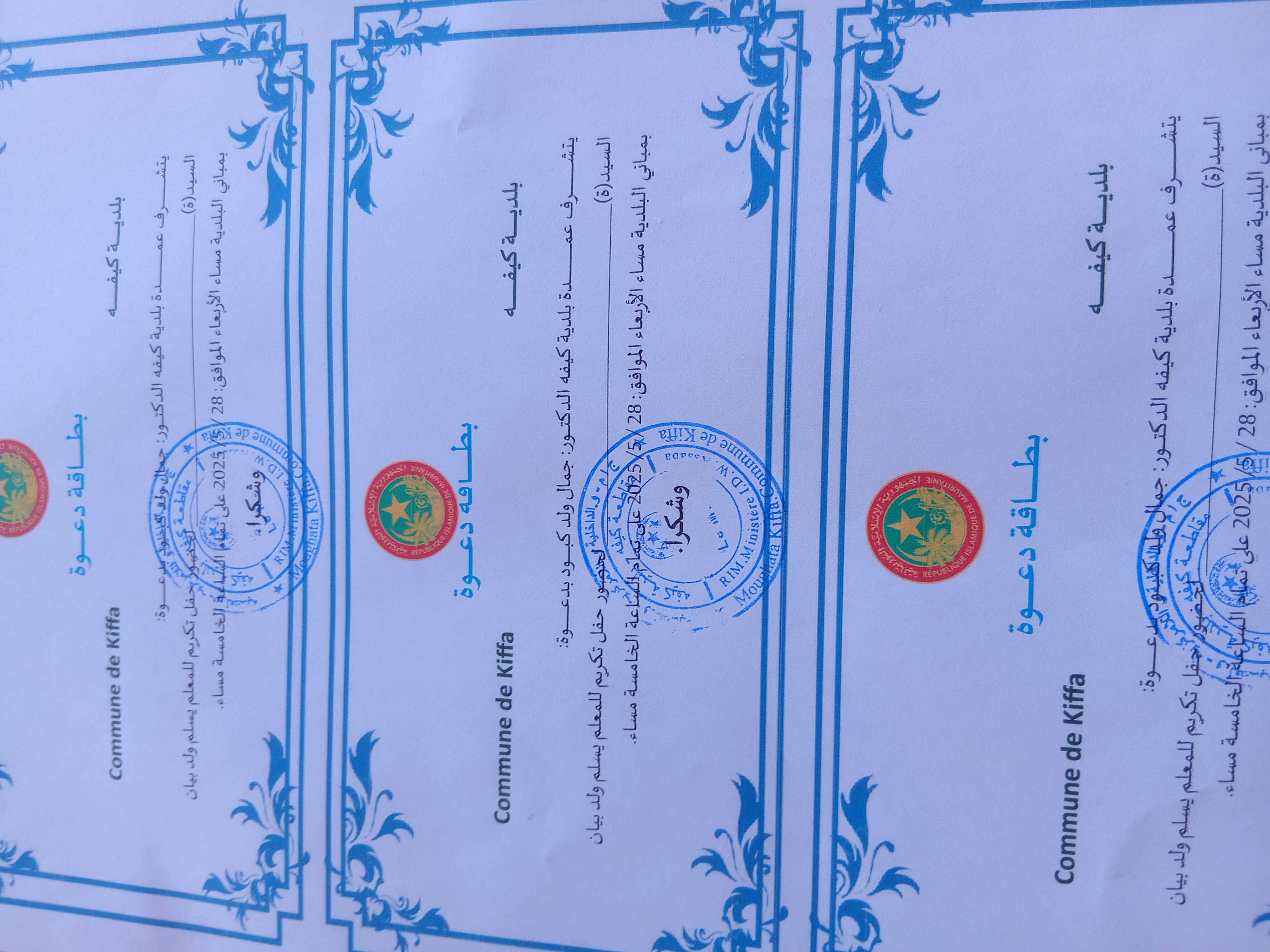 يسلم ولد بيان بدار البلدية مساء الأربعاء الموافق : 28 مايو 2025 , وذلك تشجيعا له على كتابه "الجواب الصحيح" للأقسام السوادس ابتدائية