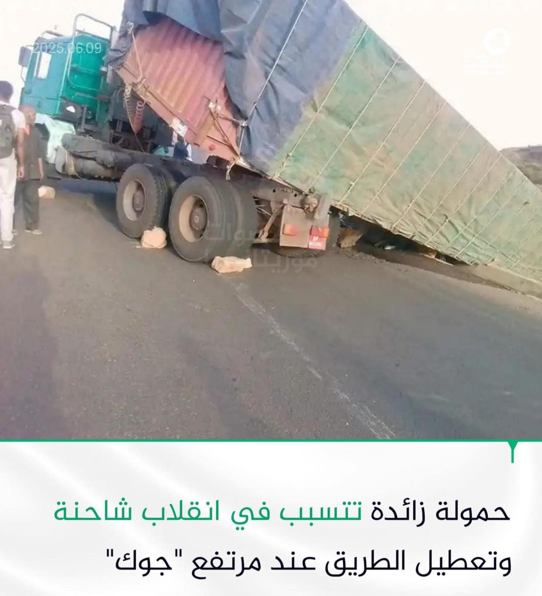 وتعد الحمولة الزائدة أحد أبرز أسباب انقلاب الشاحنات في موريتانيا، فيما يدعو نشطاء السلامة الطرقية إلى تشديد الرقابة على وزن الحمولة وتكثيف التفتيش للحد من هذه الحوادث.