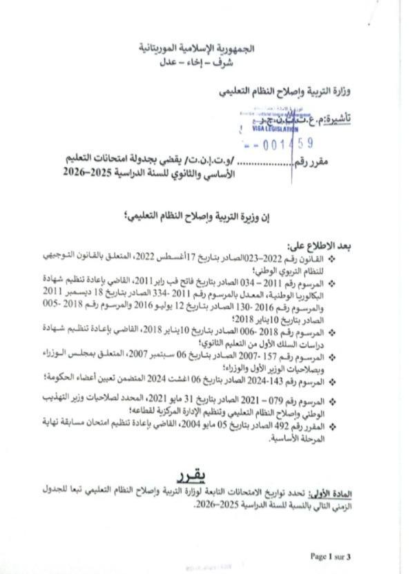وبحسب القرار، ستُنظَّم مسابقة ختم الدروس الابتدائية “كنكور” يوم 22 يونيو 2026، تليها مسابقة ختم الدروس الإعدادية “بريف” يوم 24 يونيو، فيما تُجرى امتحانات البكالوريا 2026 يوم 29 يونيو.