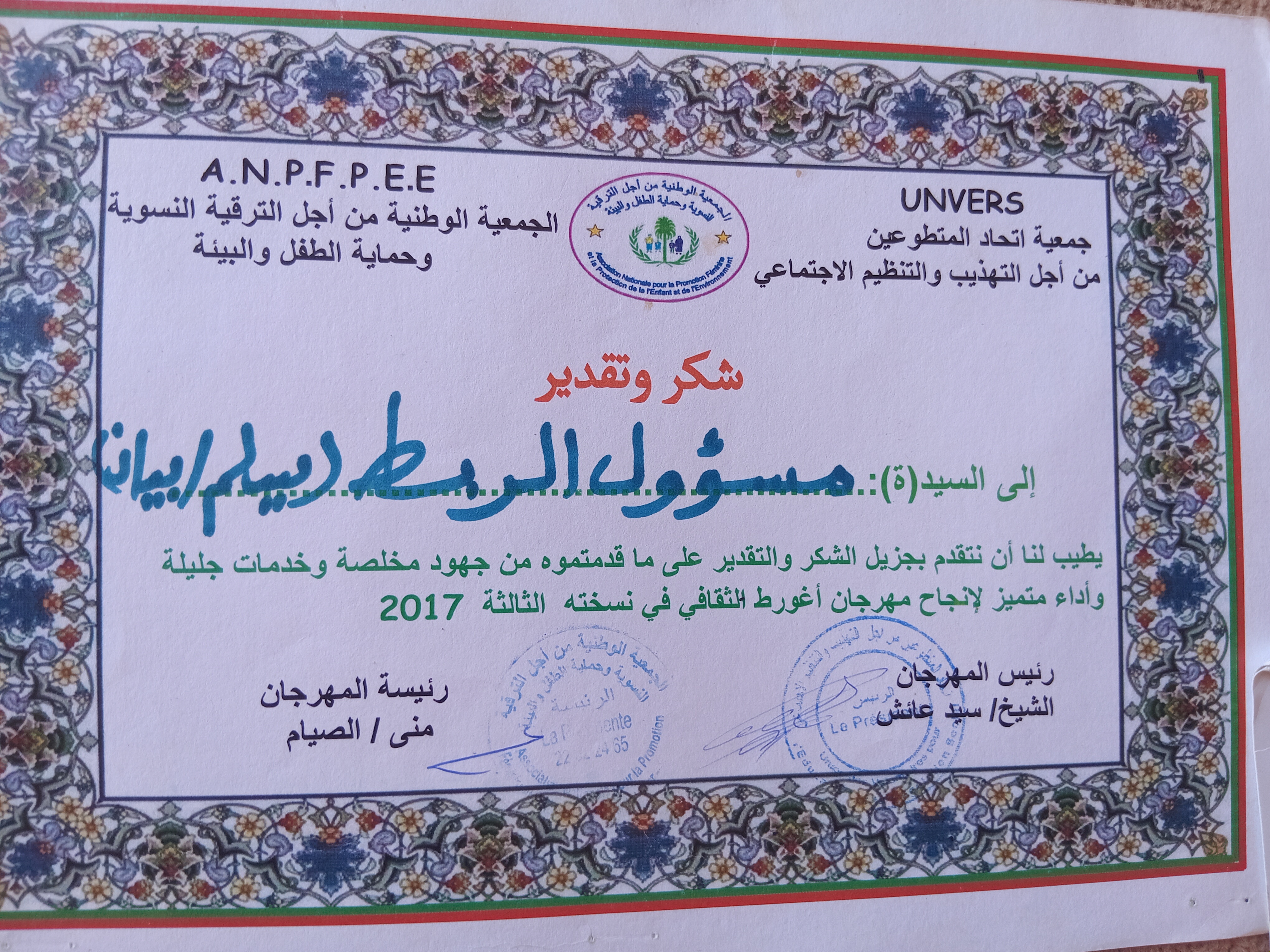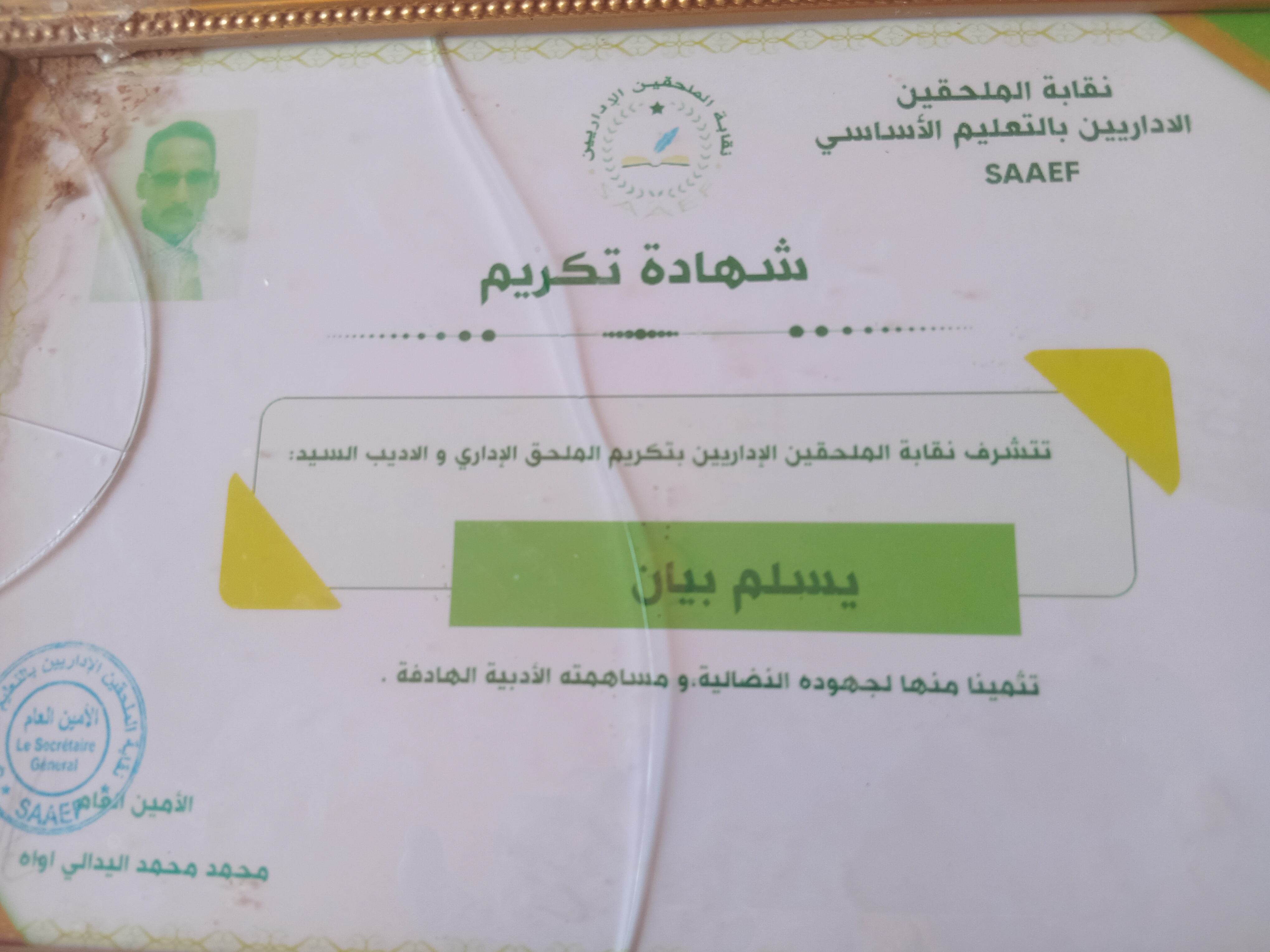 حاصل على شهادات تقديرية من جهات إدارية ونقابات عمالية ومنظمات غير حكومية .