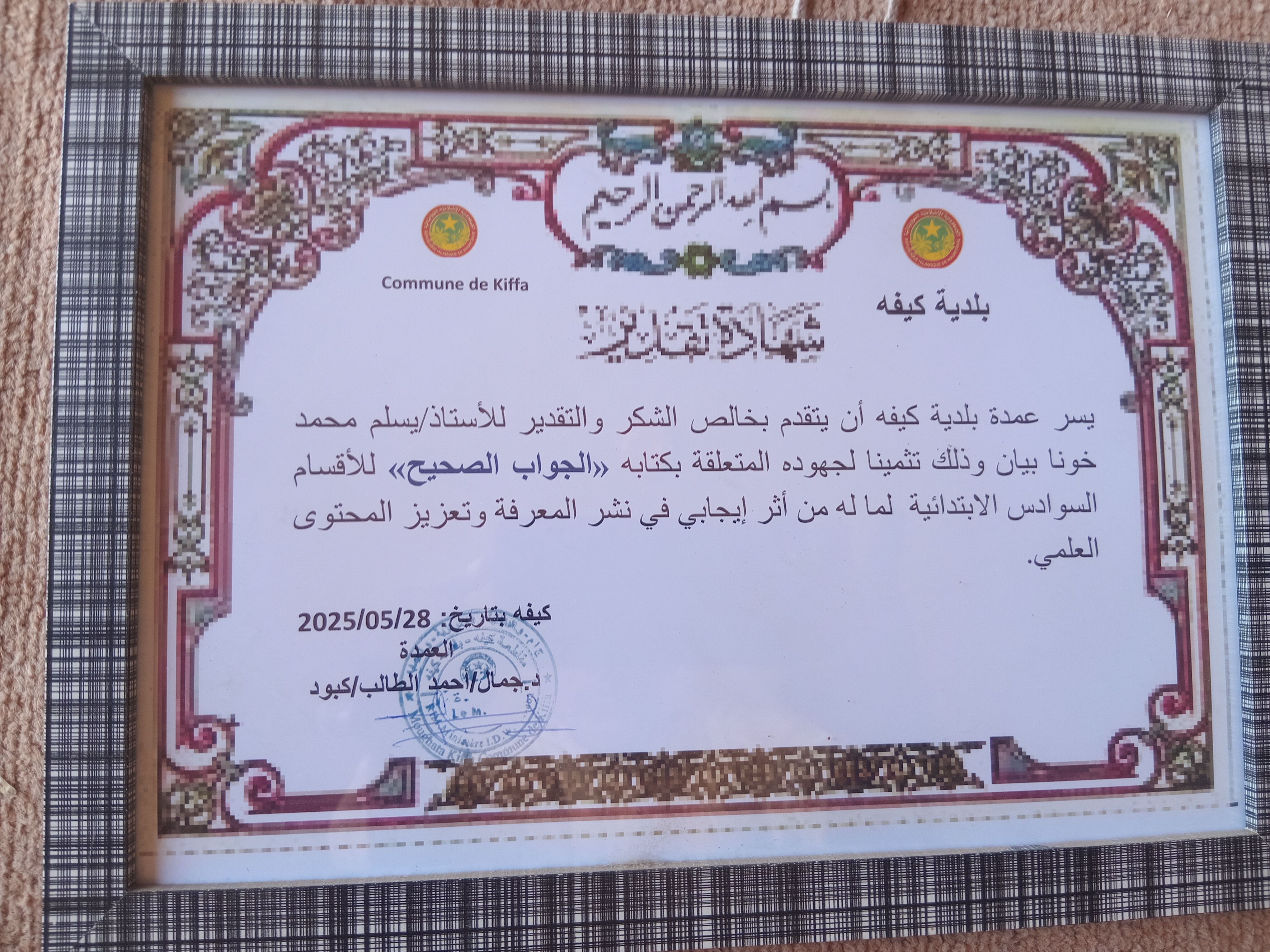 هو العمدة والأديب الشاعر : يسلم ولد محمد خون ولد بيان ولد سنة 1972م بمدينة كيفه ثم انتقل الى واد أم الخز حيث تقيم العائلة تربى في أحضان والده القاضي محمد خون ولد بيان وبعد وفاة والده 1979م انتقل إلى مدينة كيفه لينهل من الكتاتيب المدرسية دخل التعليم الإبتدائي بالمدرسة رقم 2 ( كوميز ) أخذ الباركلويا شعبة الأداب العصرية سنة 1993م والتحق بالتعليم الجامعي 1994م وفي سنة 1995 التحق بمدرسة تكوين المعلمين ليتخرج منها معلما سنة 1996م درس بمناطق مختلفة من ولاية لعصابه خلال مسيرته التعليمية ألف مذكرة في مادة الرياضيات سماها “مجلة البيت تمارين وحلول” وألف بعد ذلك كتابه “الجواب الصحيح للأقسام السوداس أبتدائية. ترقى بعد ذلك في التعليم ليصبح ملحقا اداريا وهو المنصب الذي يشغله حاليا .