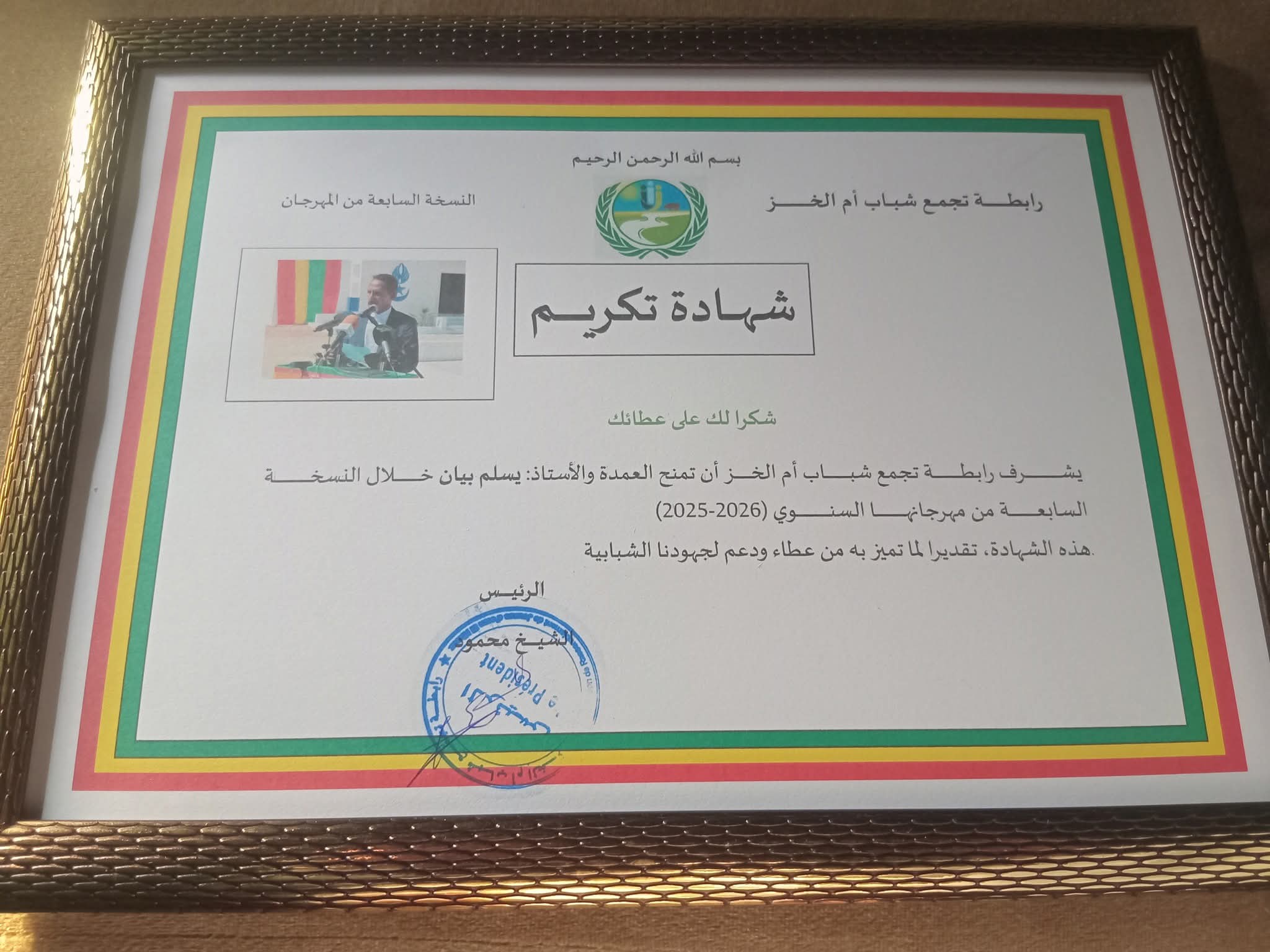 اختار تجمع شباب أم الخز تكريم العمدة : يسلم ولد بيّان لما قدمه ويقدمه من جهود في سبيل التنمية والثقافة وتعزيز اللحمة الوطنية ...